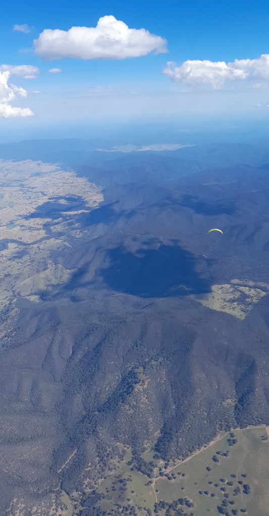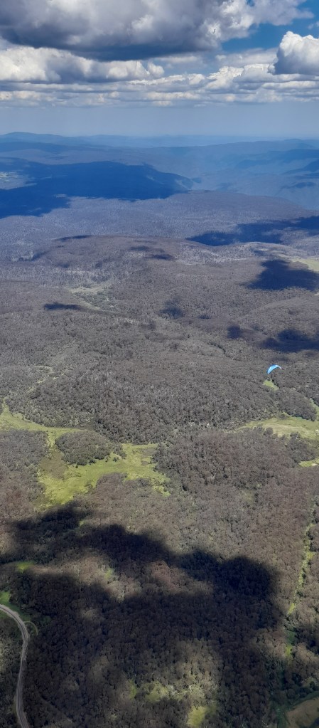 I was overcome with emotion when the reality of what we had achieved hit me. I had completed a life goal, one I thought wasn’t probable. We had a quick chat on the radio and agreed that it would be a shame not to keep flying. I radioed the retreive car to make sure it was ok. There was an unequivocal yes, but it would cost us a massage. Our new goal was Swifts Creek.